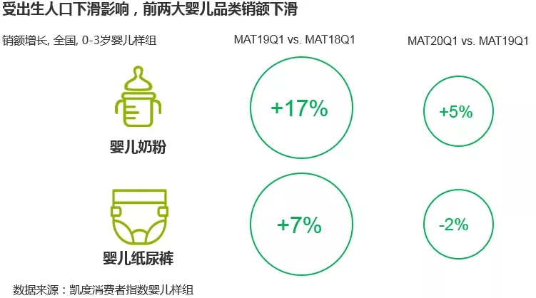 受到新生人口減少的影響,母嬰市場(chǎng)兩大頭部品類——奶粉和紙尿褲增長開始放緩。凱度消費(fèi)者指數(shù)顯示,2019年一季度嬰兒紙尿褲銷售額同比增長7%,但2020年一季度同比下滑了2%,這一部分下跌與年初的疫情事實(shí)上關(guān)系不大。多位資深從業(yè)者表示,即便身處動(dòng)蕩的疫情環(huán)境下,消費(fèi)者對(duì)于奶粉、紙尿褲這樣的剛需產(chǎn)品的投入絲毫不會(huì)吝嗇。