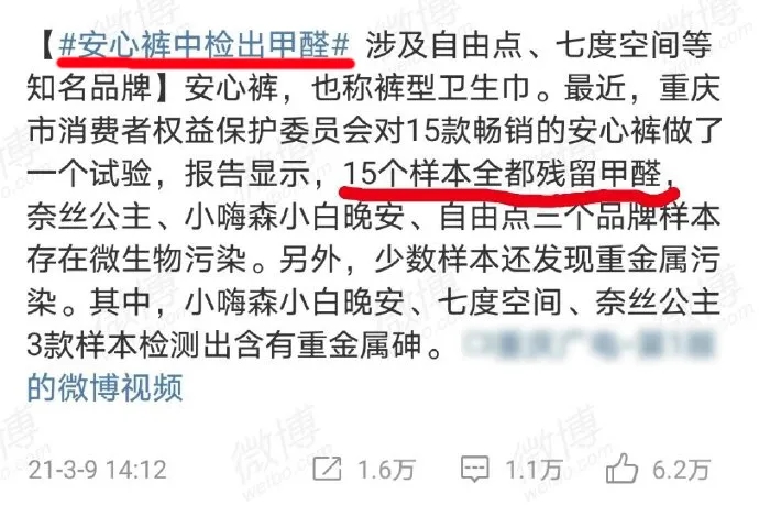 對于此次風(fēng)波,衛(wèi)生用品協(xié)會也出面為以上品牌“伸冤”,并給出了具體說明,強(qiáng)而有力地回?fù)袅?ldquo;標(biāo)題黨”。.jpg)